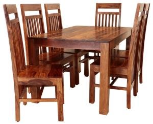 Objavte rozmanitosť a eleganciu, ktorú ponúka jedálenský set z masívu pre 6 osôb z palisandru, ideálny pre vytvorenie útulného a štýlového prostredia vo vašej jedálni. Tento nádherný rustikálny jedálenský set z masívu, súčasť Kolekcie GANI, je vyrobený s dôrazom na tradičné remeselné spracovanie a kvalitu, ktorú poskytuje výnimočne odolný palisander. Materiál, starostlivo vybraný z tradičných indických zdrojov, dáva každému kusu nábytku jedinečný vzhľad a zaisťuje dlhú životnosť.