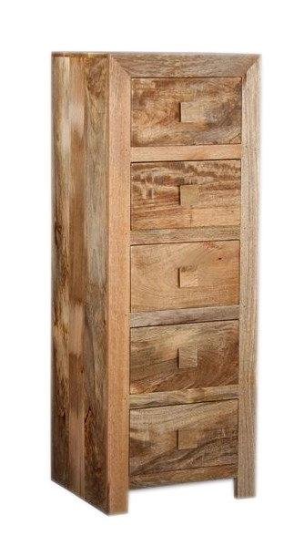 Zásuvková komoda z masívneho dreva pozostáva z piatich priestranných zásuviek, ktoré ponúkajú dostatok priestoru na uloženie oblečenia, posteľnej bielizne alebo iných domácich potrieb. Vďaka povrchovej úprave mangového dreva si zachováva svoj prirodzený vzhľad a štruktúru, čím dodá vášmu interiéru jedinečné čaro. Mango je ekologický materiál a vyznačuje sa vysokou odolnosťou proti poškodeniu, čo prispieva k dlhej životnosti tejto komody z masívneho dreva.