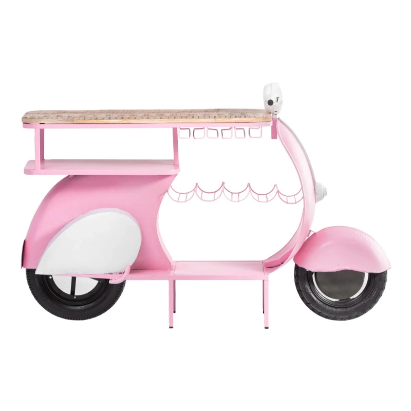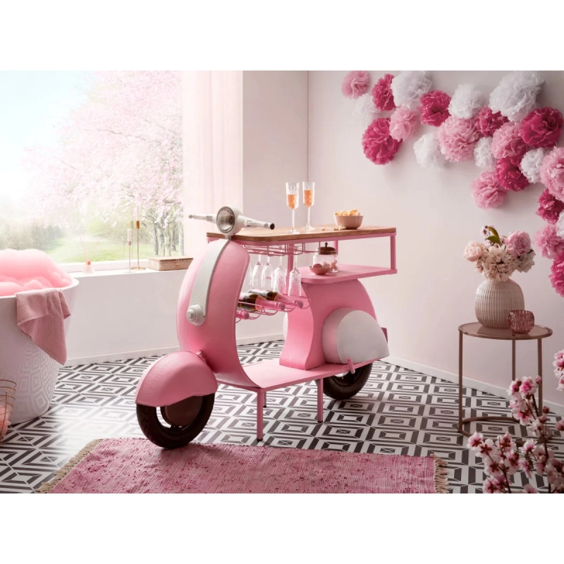 \n\nKovová konštrukcia pultu Scooter Nova Pink je zárukou stability a odolnosti, čím sa stáva ideálnou voľbou pre každodenné používanie. V kombinácii s jeho elegantným dizajnom a atraktívnymi rozmermi sa ľahko integruje do rôznych štýlov interiéru, či už preferujete minimalistický, industriálny alebo boho look. Inšpirujte sa a nechajte svoj domov prežiariť týmto jedinečným kúskom, ktorý dodá vášmu priestoru osobitosť a šarm. Neváhajte a objavte čaro, ktoré barový pult Scooter Nova Pink prinesie do vášho života - urobte prvý krok k premene vášho interiéru ešte dnes!