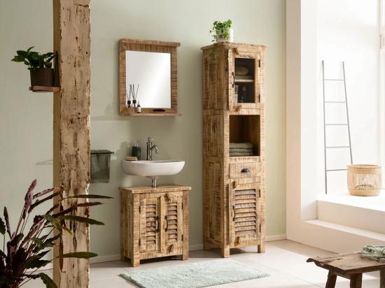 Masívna 3-dielna kúpeľňová sada Caribou je ideálnym riešením pre tých, ktorí túžia po elegantnom a zároveň funkčnom vybavení svojej kúpeľne. Táto sada sa skladá z precízne navrhnutých skríň, ktoré spájajú moderný dizajn s nadčasovou estetikou. Ich hladké línie a sofistikovaný tvar ponúkame v prírodnom odtieni dreva, ktorý vnáša do vášho interiéru teplo a útulnosť. Skrine sú vyrobené z kvalitného masívneho dreva, čo zaisťuje ich dlhú životnosť a odolnosť voči vlhkosti. Nielen, že skrine Caribou skvele vyzerajú, ale aj efektívne využívajú priestor, vďaka čomu si v kúpeľni môžete ľahko udržiavať poriadok a prehľad.