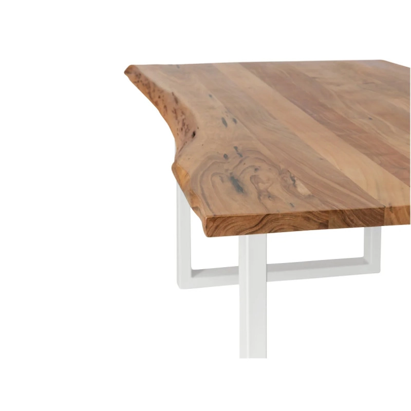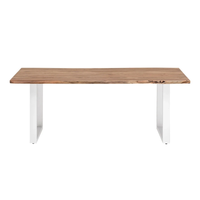 Ako vyzerá ideálne miesto pre spoločné chvíle pri jedle? Masívna jedálenská zostava Bullwer so štyrmi stoličkami Picton prináša do vášho domova nielen funkčnosť, ale aj jedinečnú atmosféru, ktorá vás vyzýva k dlhým rozhovorom a pohodovým večerom. Vyrobená z pevnej akácie s kovovými prvkami, táto zostava vyniká svojou odolnosťou a nadčasovým dizajnom. Lakovaný povrch v teplej svetlo hnedej farbe podčiarkuje krásu prírodného dreva a zároveň zabezpečuje jednoduchú údržbu a dlhú životnosť. Stoličky s čalúnením z umelej kože v bielej farbe dodávajú celku jemný kontrast a zároveň zvyšujú komfort každého posedenia.