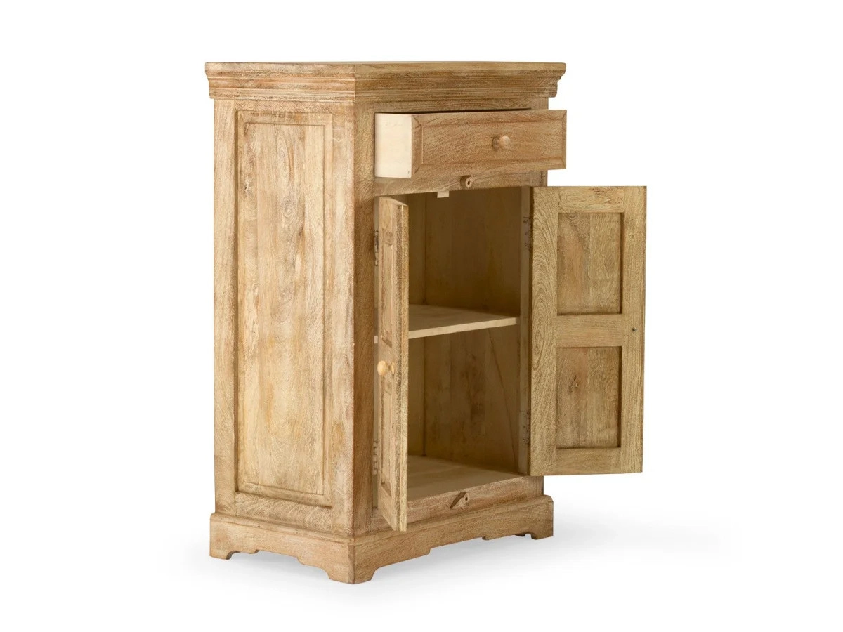 Kvalita spracovania tejto komody je bezkonkurenčná – vyrobená z robustného mangového dreva, ktoré je známe svojimi vynikajúcimi vlastnosťami a dlhou životnosťou. Lakovaný povrch zabezpečuje jednoduchú údržbu a ochranu dreva, takže si môžete byť istí, že vám komoda Patina bude slúžiť po mnoho rokov. Prírodná farba dreva sa prirodzene kombinuje s ďalšími prvkami vášho interiéru a dodáva mu nádych elegance a autenticity. Tvar komody je navrhnutý s dôrazom na modernú estetiku, ktorá ladí s minimalistickým štýlom ako aj s tradičnejším vybavením domácnosti.