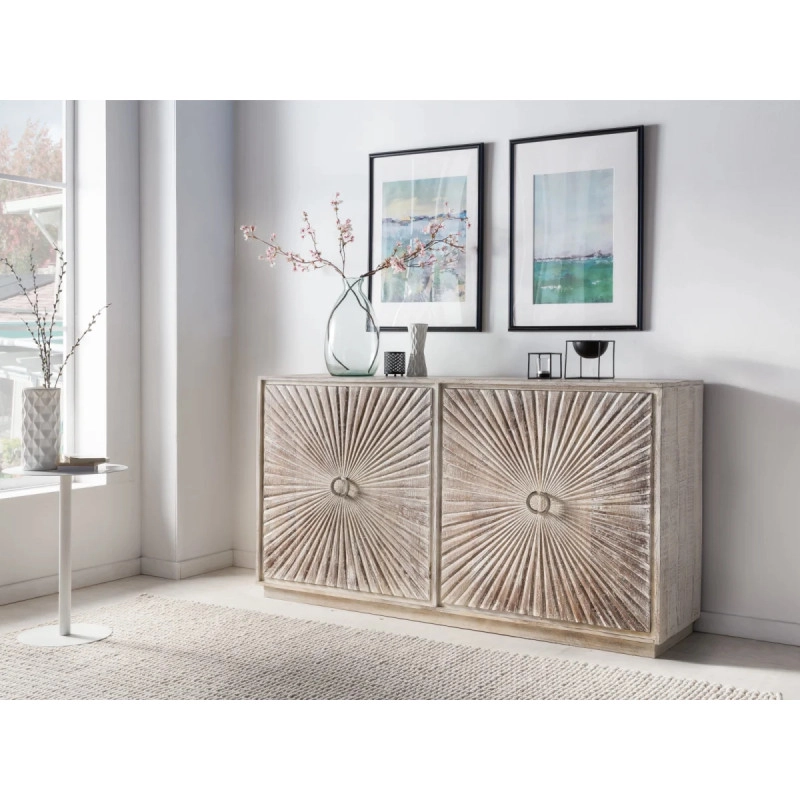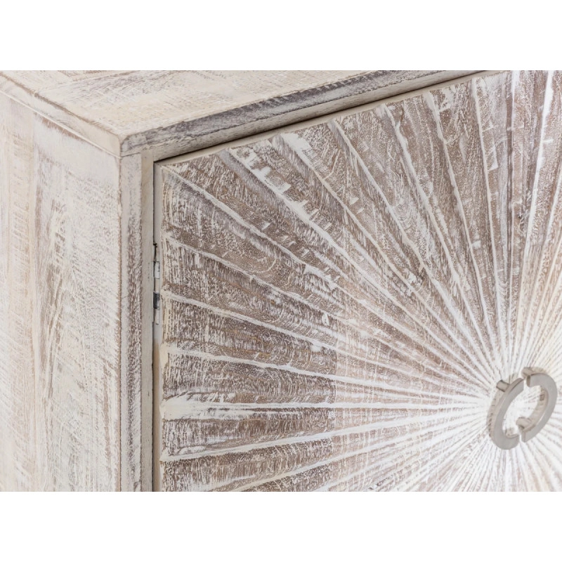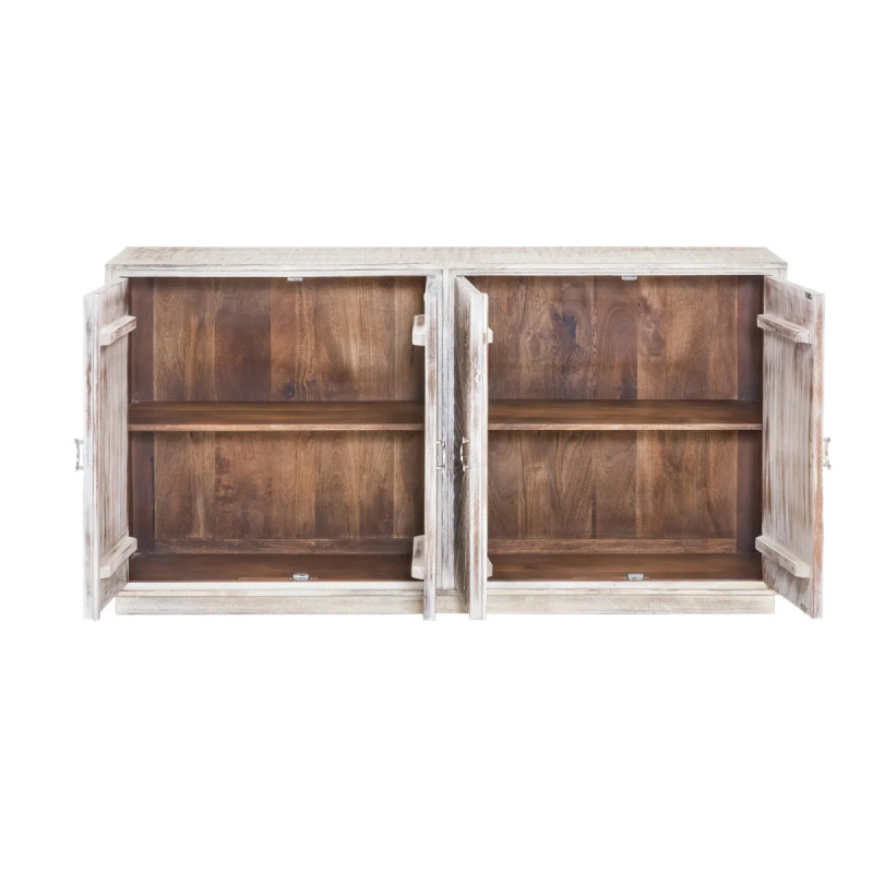 Objavte kúzlo a praktickosť masívnej komody Zambie, ktorá je vyrobená z kvalitného magnóliového dreva a dokončená voskovanou povrchovou úpravou v elegantnej bielej farbe. Tento štíhly a prepracovaný kus nábytku o rozmeroch 163×41×87 cm prinesie do vášho obývacieho pokoja štýl a úložný priestor.