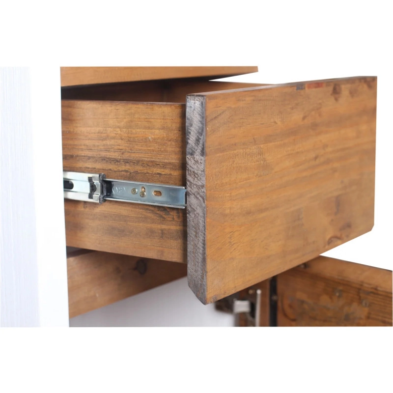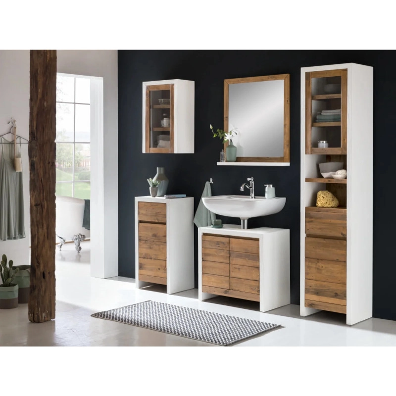 Objavte kúzlo elegancie a funkčnosti s masívnou kúpeľňovou skrinkou Burnham, ktorá dokonale zapadne do moderného interiéru. Táto skrinka, vyrobená z recyklovanej borovice a MDF, spája prírodnú krásu dreva s praktičnosťou a udržateľnosťou. Jej biela farba v kontraste s hnedými prvkami vytvára harmonický vzhľad, ktorý oživí každú kúpeľňu a dodá jej nádych útulnosti. Navyše, jej lakovaný povrch zabezpečuje ľahkú údržbu a odolnosť voči vlhkosti, čo je v kúpeľňovom prostredí úplne kľúčové.