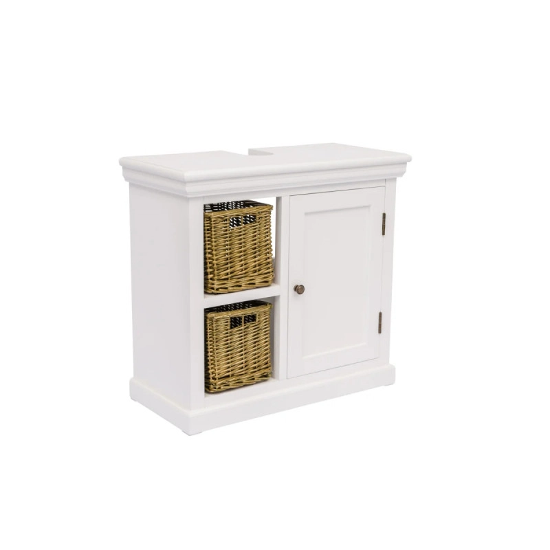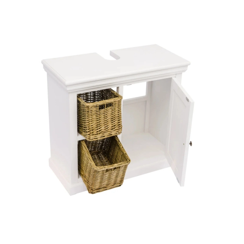 Predstavte si elegantnú kúpeľňovú skrinku pod drez Bogota, ktorá sa stane nielen praktickým úložným priestorom, ale aj štýlovým prvkom vašej kúpeľne. Tento kus je vyrobený z kvalitnej Paulovnie a MDF, čo zaisťuje nielen dlhú životnosť, ale aj jednoduchú údržbu. Jej lakovaný povrch v čistej bielej farbe dodáva interiéru vzdušnosť a sviežosť, čím vytvára harmonické prostredie. S rozmermi 65 × 30 × 60 cm sa skrinka ľahko zmestí aj do menších priestorov, pričom poskytuje dostatok miesta pre všetky nevyhnutnosti. Moderný dizajn skrinky sa skvele hodí do rôznych štýlov kúpeľní, od minimalistických až po rustikálne.