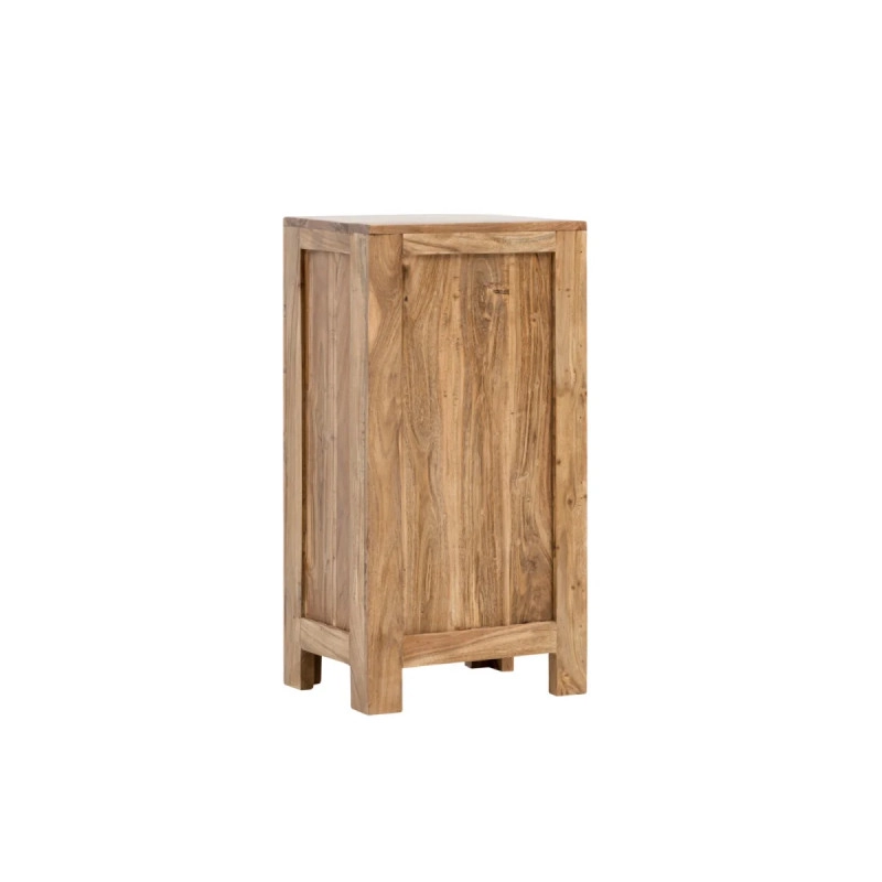 Masívna kúpeľňová spodná skrinka Katha z akácie je dokonalým spojením funkčnosti a elegancie, ktorá vnese do vašej kúpeľne teplý a prírodný nádych. S rozmermi 42×30×80 cm sa skvele hodí aj do menších priestorov, pričom ponúka dostatok úložného priestoru pre všetky vaše toalety, uteráky či kozmetiku. Hnedý lakovaný povrch akácie nielenže zaisťuje príjemný vzhľad, ale tiež chráni drevo pred vlhkosťou a opotrebovaním, čo je v kúpeľňovom prostredí kľúčové. Táto skrinka vyniká precíznym spracovaním, ktoré podčiarkuje jej masívny charakter a dodáva jej jedinečný štýl. Jej minimalistický dizajn s jemnými líniami sa ľahko prispôsobí rôznym interiérovým trendom, či už preferujete moderný, škandinávsky alebo rustikálny štýl.