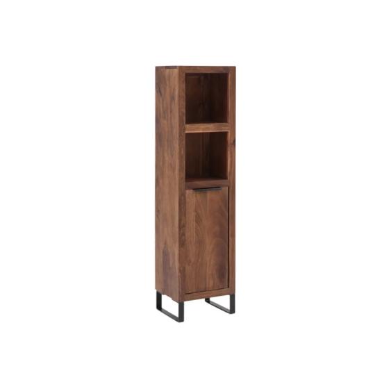 \nMasívna vysoká skrinka Sydney z akácie ponúka nielen pevnosť a odolnosť, ale aj prirodzenú krásu dreva, ktorá vnese do priestoru teplý a príjemný nádych. Lakovaný povrch zdôrazňuje jemnú štruktúru hnedého dreva, chráni ho pred vlhkosťou a zároveň zabezpečuje jednoduchú údržbu. Vďaka úzkym rozmerom 31 cm na šírku a 25 cm na hĺbku si skrinka nájde svoje miesto aj v menších kúpeľniach, kde pomôže efektívne využiť priestor smerom do výšky, pretože meria impozantných 125 cm.
