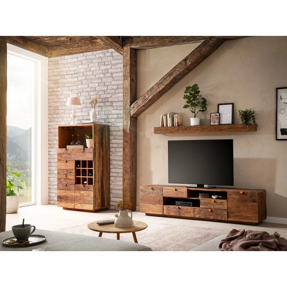Masívna nástenná polica Oldwood z recyklovaného dreva je dokonalým príkladom harmonického spojenia funkčnosti a estetiky, ktorý vnese do vášho obývacieho pokoja prírodné čaro. S dĺžkou 160 cm, šírkou 15 cm a hĺbkou 10 cm predstavuje ideálny priestor pre vystavenie vašich obľúbených kníh, dekorácií alebo rastlín, čím vytvoríte osobité a útulné prostredie. Lakovaný povrch v hnedom odtieni podčiarkuje jedinečný charakter každého kusu dreva, ktorý si zachováva stopy histórie a prírodnú štruktúru, čo dáva každej polici unikátny vzhľad. Recyklované staré drevo nielenže prináša do vášho domova čaro minulosti, ale tiež prispieva k udržateľnosti a ochrane nášho životného prostredia.
