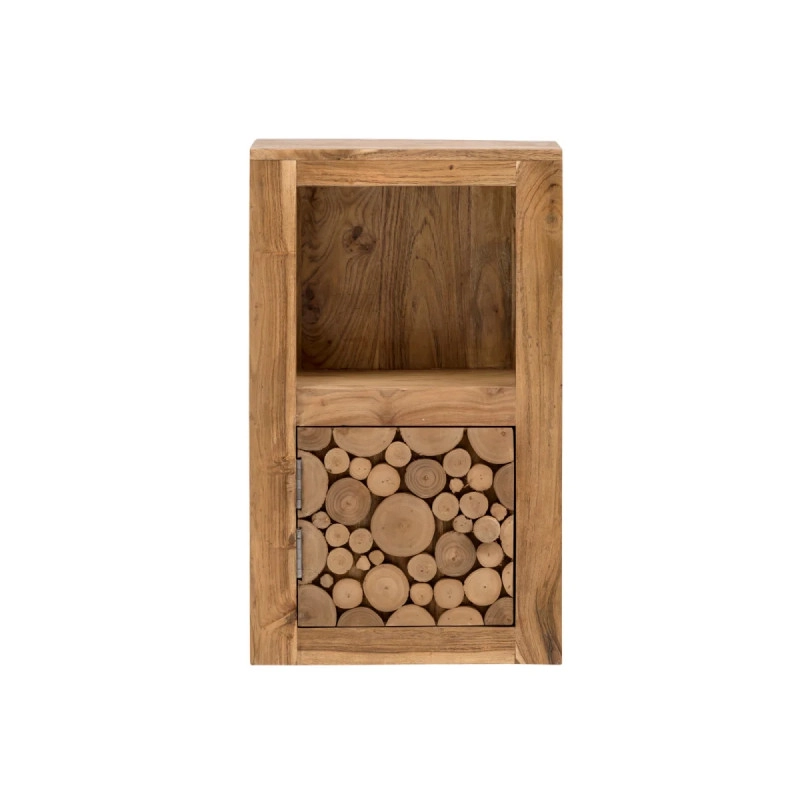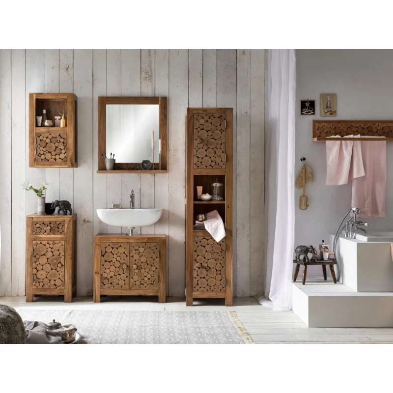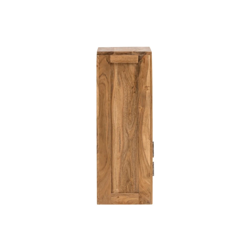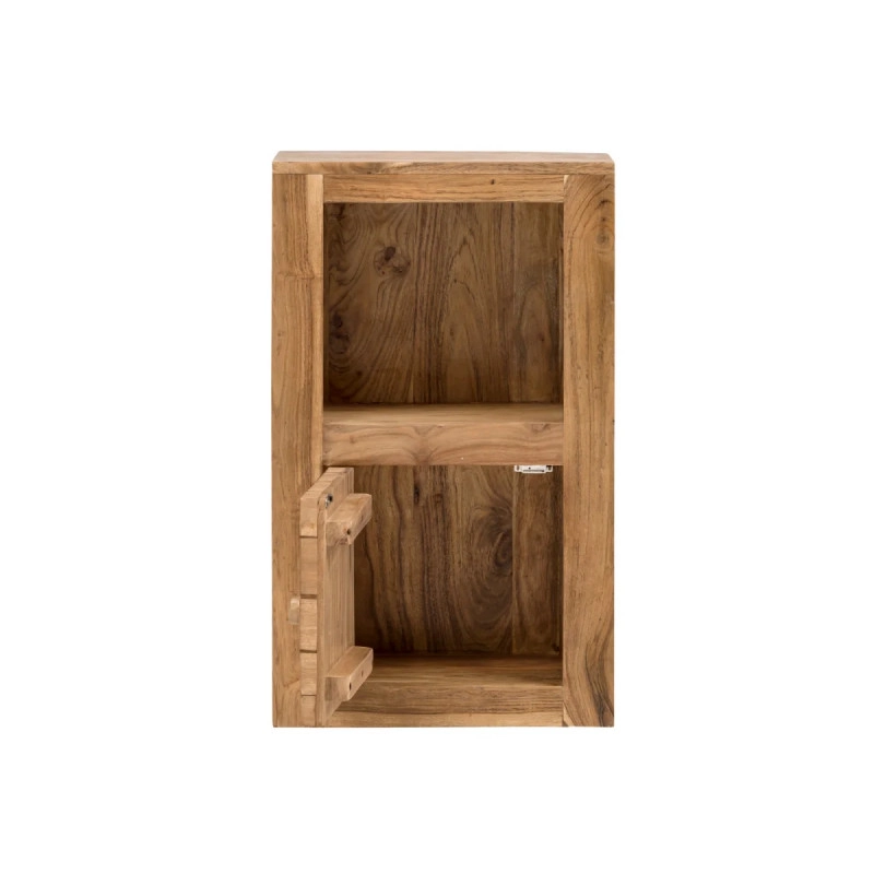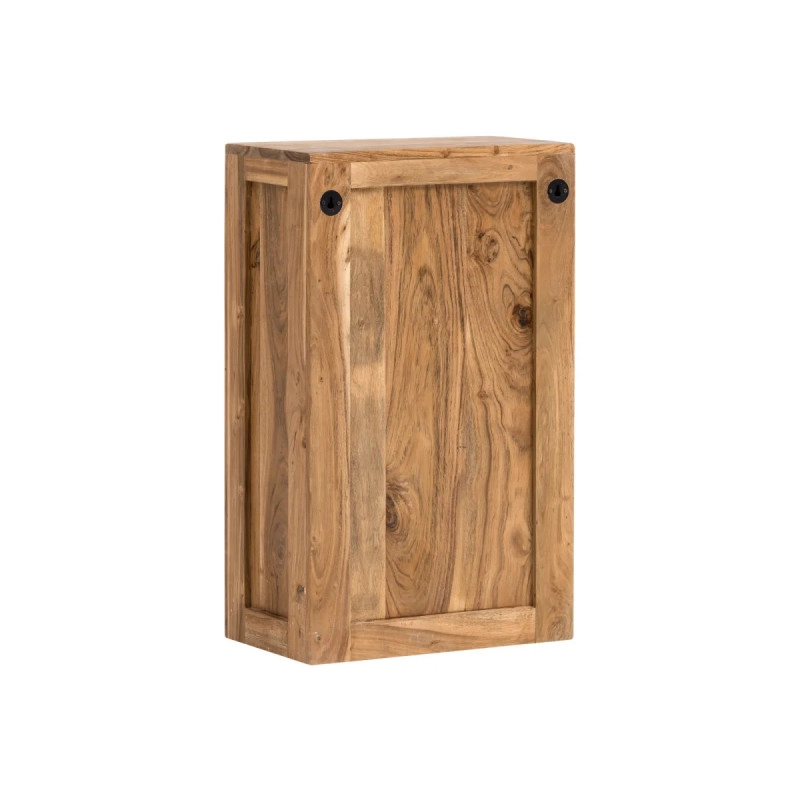 Masívna nástenná skrinka Katha, vyrobená z kvalitnej akácie a chránená lakom, dodá vašej kúpeľni prírodnú eleganciu a praktickosť. Rozmery 42×25×70 cm zabezpečia dostatok priestoru pre všetky vaše kúpeľňové potreby.