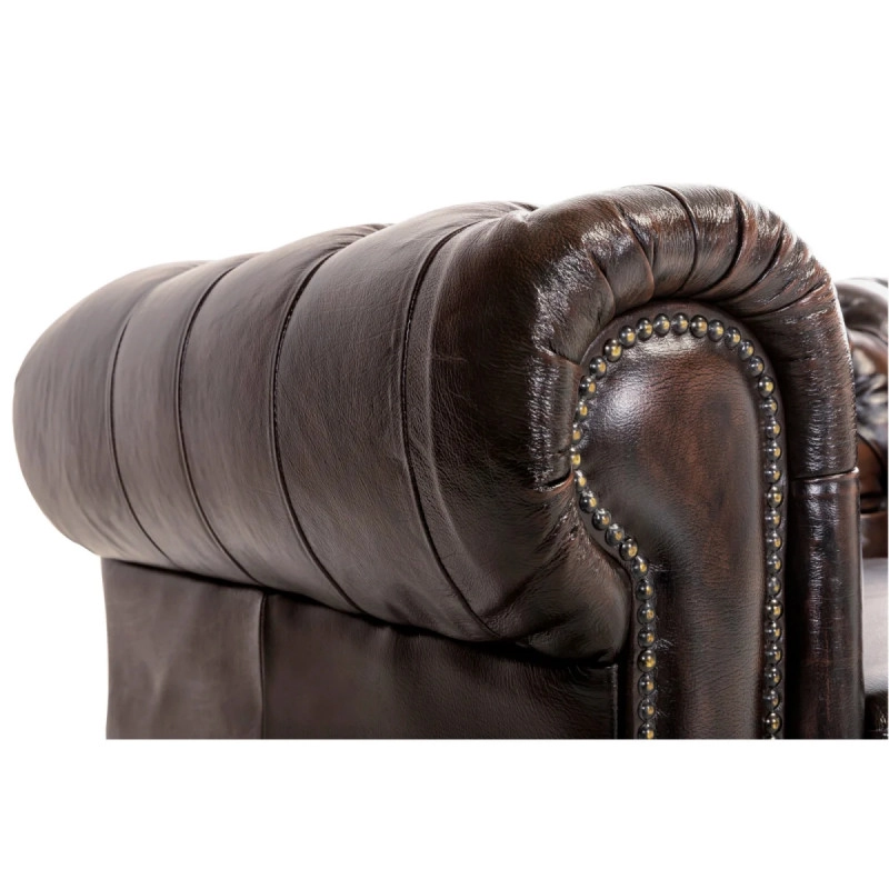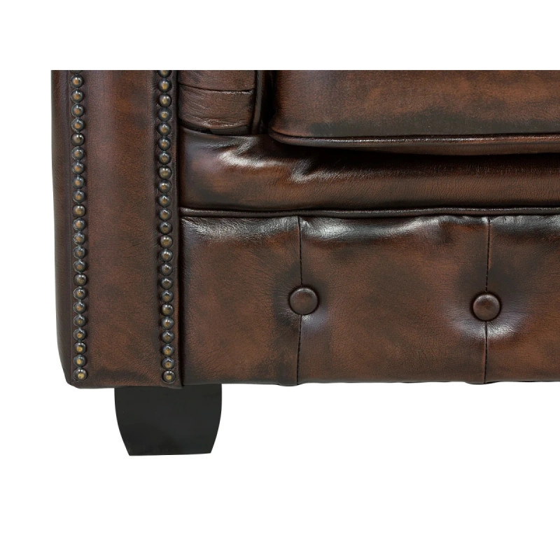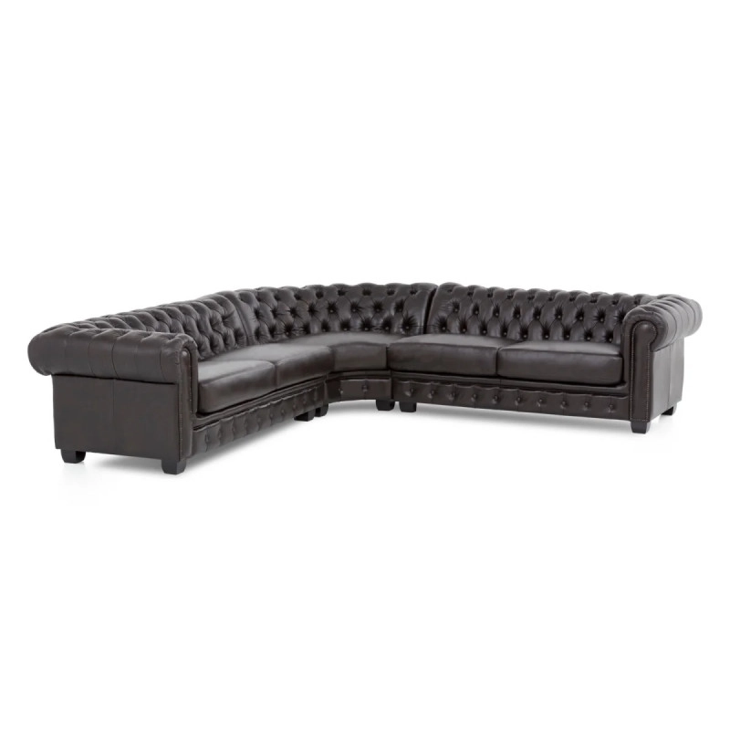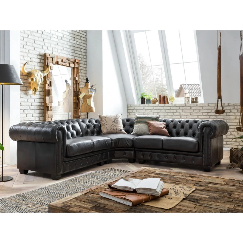 \n\nVyrobená z kvalitnej pravej kože, táto sedacia súprava zaručuje nielen nadčasový vzhľad, ale aj vysokú odolnosť a jednoduchú údržbu. Každý kus je starostlivo spracovaný, čo svedčí o exkluzívnom remeselnom umení, ktoré stojí za značkou Chesterfield. Každý detail, od robustnej konštrukcie po jemné prešívanie, je navrhnutý tak, aby poskytoval maximálny komfort a zároveň upútal pozornosť ako dizajnový prvok vášho domova. Vytvorte si útulný kútik, kde sa budete cítiť príjemne, a objavte, ako môže kvalitná rohová sedacia súprava obohatiť váš životný priestor. Pridajte túto nádhernú súpravu do svojho interiéru a užite si chvíle odpočinku, ktoré si zaslúžite.