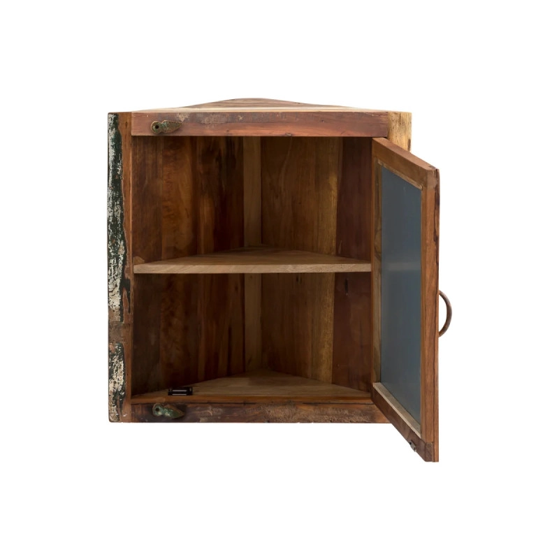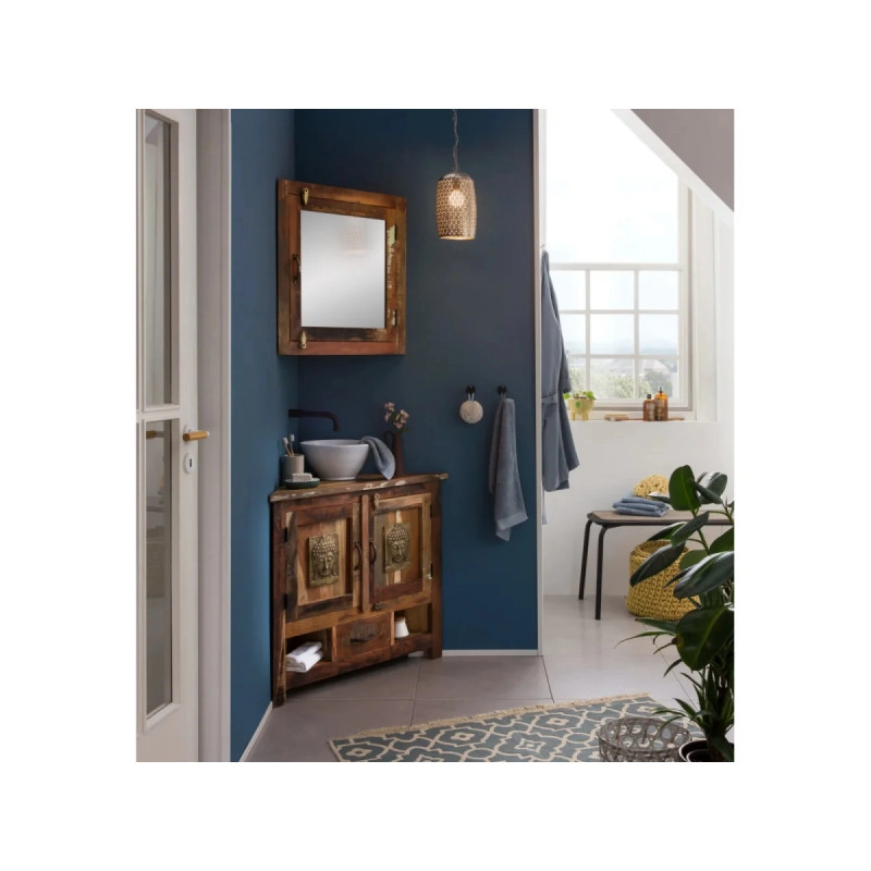 Objavte rustikálne čaro masívneho rohového skrinky Sumana, ktorá je vyrobená z recyklovaného dreva a zaujme svojím lakovaným hnedým prevedením. Ideálna voľba pre úsporné využitie priestoru vo vašej kúpeľni, rozmery 65×30×65 cm poskytujú dostatok úložného priestoru a integrované zrkadlo pridáva praktickosť aj eleganciu.