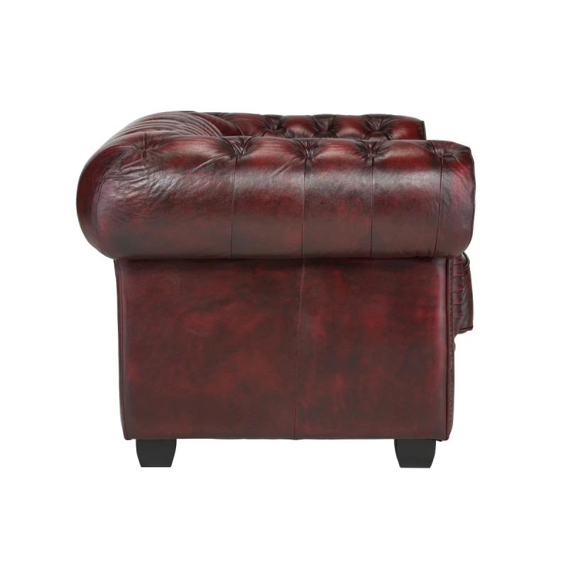 Objavte luxus v podobe masívnej sedacej súpravy Chesterfield, vyrobenej z pravej červenej kože, ktorá dodá vašej obývačke nádych tradičnej elegancie. Tento pohodlný a štýlový nábytok sa stane stredobodom vašej domácnosti, a to ako vďaka svojmu impozantnému vzhľadu, tak aj výnimočnému komfortu.