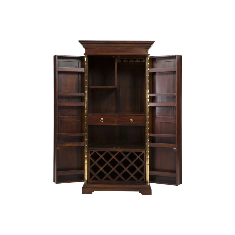 Objímejte eleganciu a funkčnosť s masívnou vinotékou Cambridge, vyrobenou z prvotriedneho lakovaného mahagónu v klasickej hnedej farbe. Tento špičkový kus nábytku pre milovníkov vína, o rozmeroch 92×70×190 cm, je dokonalým doplnkom každej jedálne či obývacej izby, kde prinesie nádych luxusu a pohodlie pri uložení vašich obľúbených fliaš.