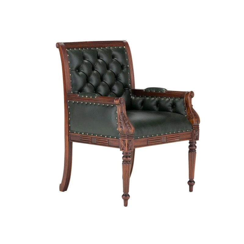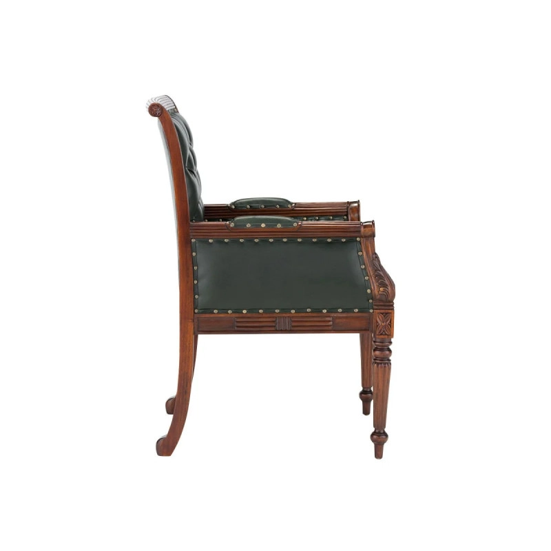 Pohodlné masívne kancelárske kreslo Cambridge II, vyrobené z kvalitného lakovaného mahagónového dreva, ponúka nadčasový dizajn a výnimočný komfort. Jeho elegantná zelená farba a robustné rozmery 73 cm × 72 cm × 100 cm z neho robia ideálnu voľbu pre každú reprezentatívnu kanceláriu.