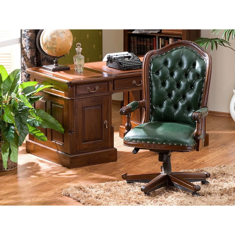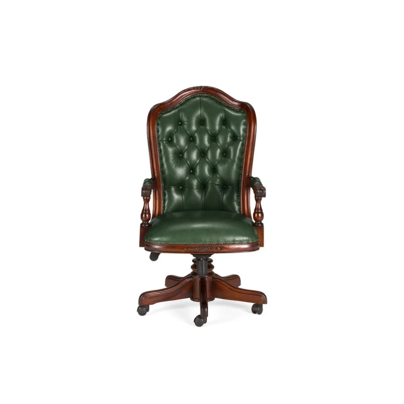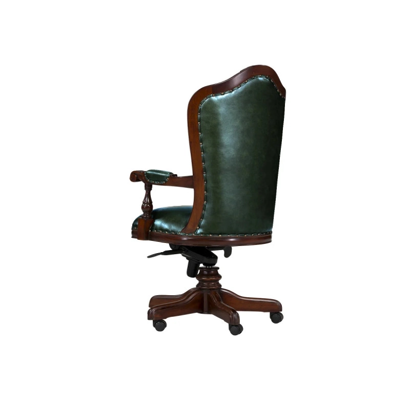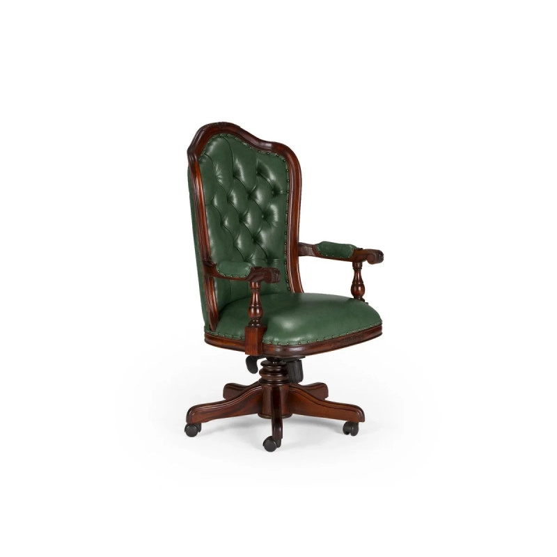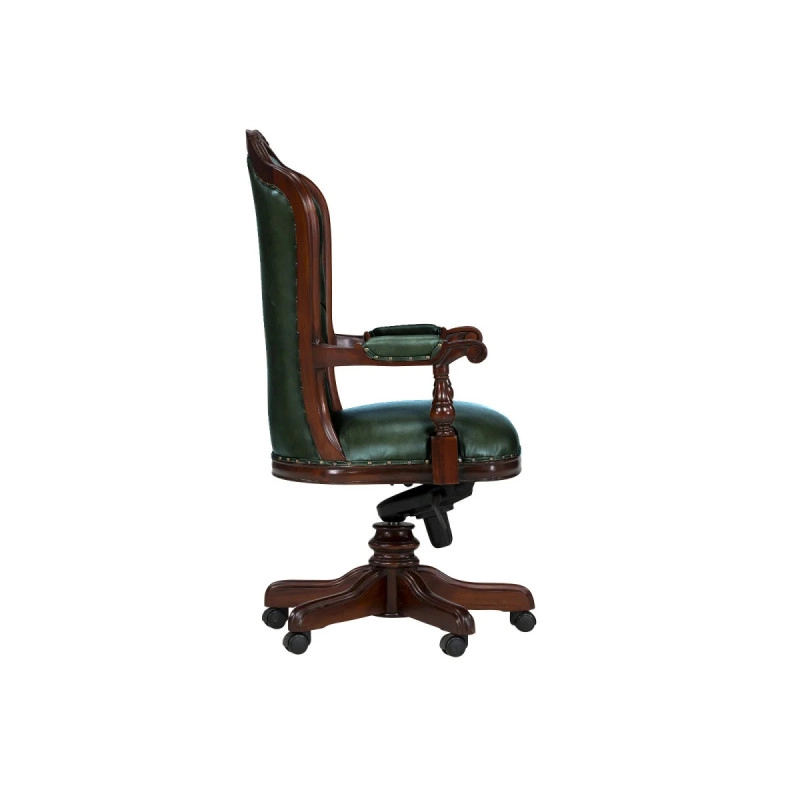 Masívne kancelárske kreslo Cambridge II z mahagónu, lakované v elegantnej zelenej farbe, je dokonalým spojencom v boji proti nudě a stereotypu vo vašom pracovnom prostredí. Jeho sofistikovaný dizajn s dôrazom na detaily prináša do kancelárie nádych luxusu a štýlu, ktorý osloví nielen vás, ale aj vašich obchodných partnerov a kolegov. Mahagón, známy svojou výnimočnou pevnosťou a krásnou textúrou, zaručuje dlhú životnosť a odolnosť, zatiaľ čo lakovaný povrch dodáva kreslu moderný lesk a jednoduchú údržbu. S rozmermi 65 cm × 57 cm × 119 cm sa skvele hodí ako do priestranných kancelárií, tak do menších pracovných kútov, kde vám poskytne pohodlie počas dlhých pracovných hodín.