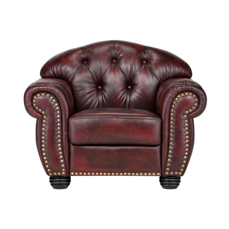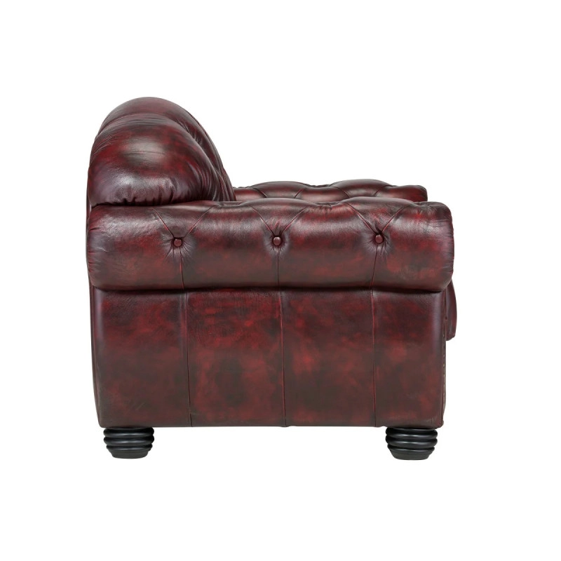 Ponorte sa do elegancie a nadčasovosti s masívnym kreslom Chesterfield Hereford, ktoré prináša do vášho interiéru nádych luxusu a sofistikovanosti. Jeho jedinečný dizajn, inšpirovaný klasickými anglickými kreslami, sa skvele hodí do rôznych typov priestorov – od moderných obývacích izieb po štýlové kancelárie. Červená pravá koža, z ktorej je kreslo vyrobené, nielenže pritiahne pozornosť, ale tiež dodáva atmosféru tepla a pohodlia. S rozmermi 112 cm na šírku, 96 cm na hĺbku a 94 cm na výšku, ponúka dostatok priestoru na relaxáciu a opretie sa po náročnom dni. Každý detail, od prešívania po elegantné zakrivenie opierky, bol starostlivo spracovaný, aby zaručil nielen estetický dojem, ale aj dlhú životnosť.