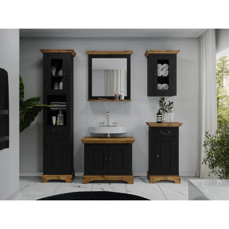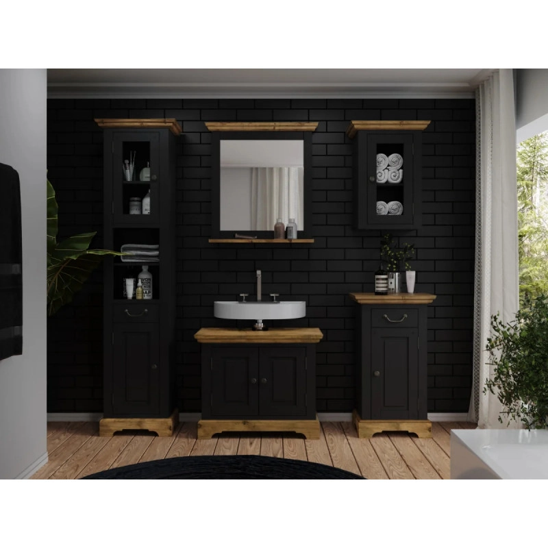 Objednajte si elegantné masívne kúpeľňové zrkadlo Kenya, vyrobené z kvalitného borovice a MDF v lakovanom čiernom prevedení, ktoré dodá vašej kúpeľni šmrnc. S rozmermi 73×15×78 cm a obdĺžnikovým tvarom sa zrkadlo skvele hodí do moderných aj tradičných interiérov.