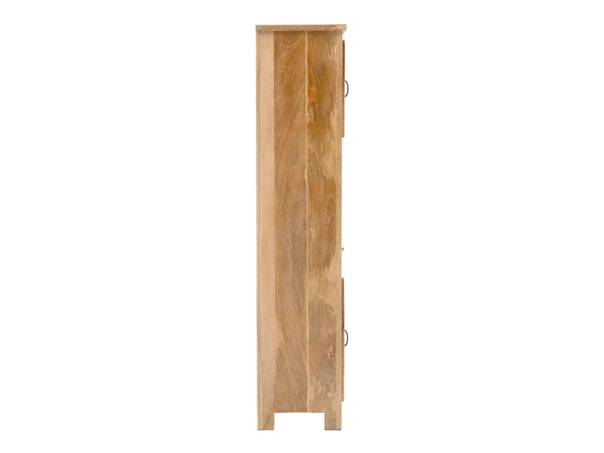 Predstavte si svoju kúpeľňu ako oázu pokoja a harmónie. Uprostred tohto priestoru sa môže skvele vyjímať masívna kúpeľňová skriňa Santa Cruz, ktorá vďaka svojmu nezameniteľnému dizajnu a kvalitnému spracovaniu dodá vašej kúpeľni originálny nádych. Táto obdĺžniková skriňa je vyrobená z jedinečného dreva mango, známeho svojou odolnosťou a luxusným vzhľadom. Prírodná farba dreva sa skvele kombinuje s rôznymi interiérovými štýlmi, či už preferujete rustikálny, boho alebo moderný estetiky.