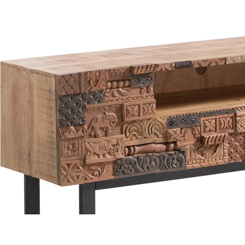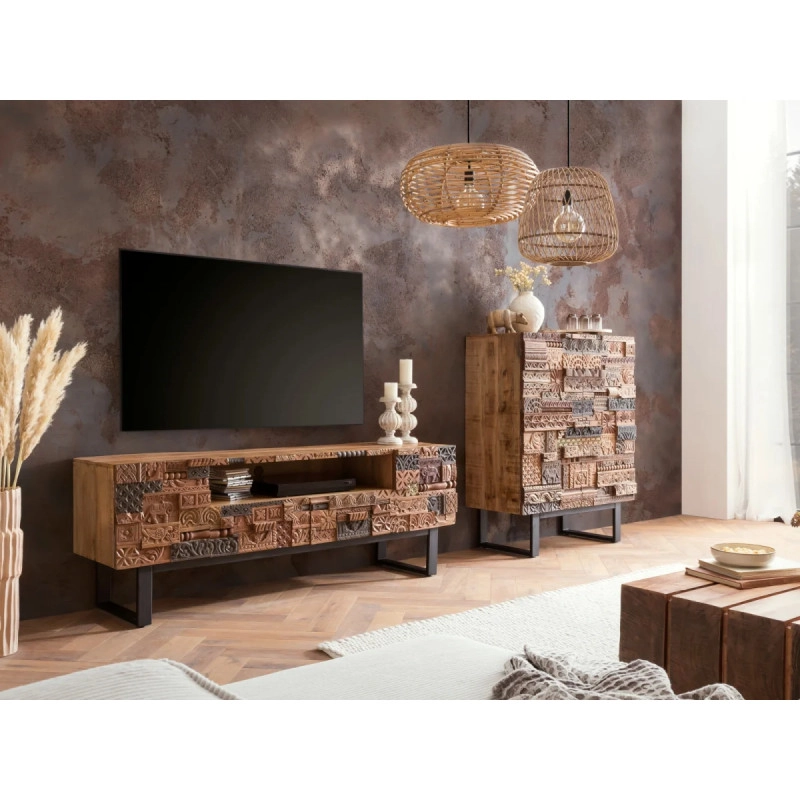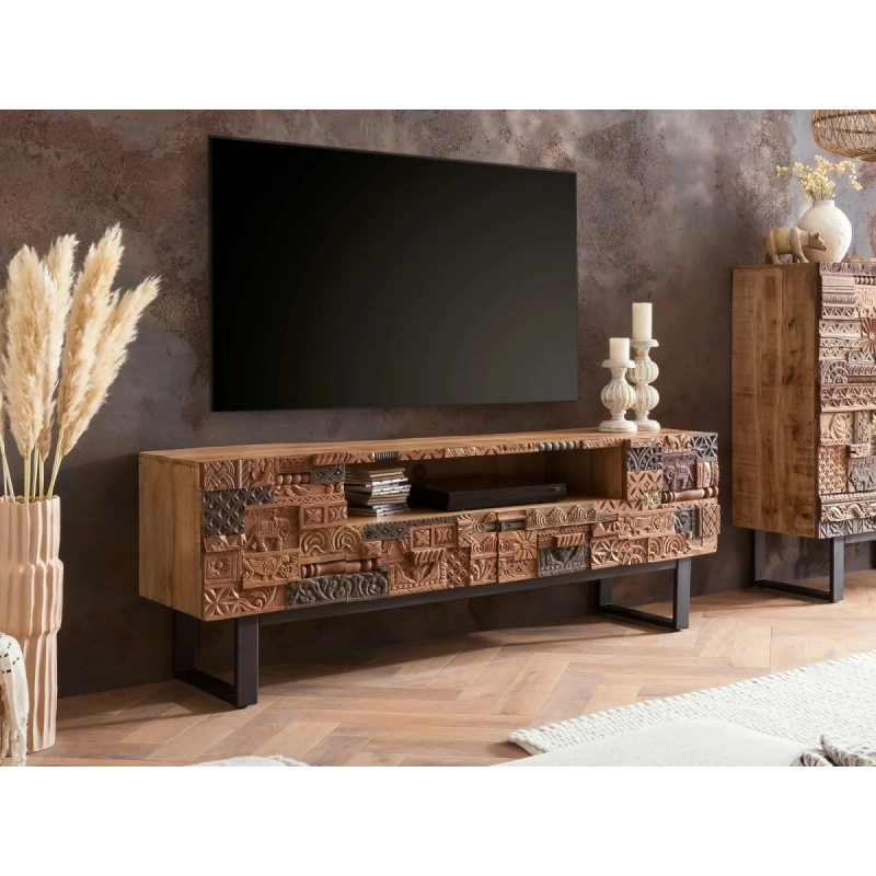 Masívny TV stolík Grónsko z kvalitného mangového dreva dodá vašej obývačke teplý a prírodný vzhľad. Tento elegantne lakovaný kúsok v hnedej farbe, s rozmermi 180×45×65 cm, poskytuje dostatok priestoru pre vašu televíziu a ďalšie multimediálne zariadenia.