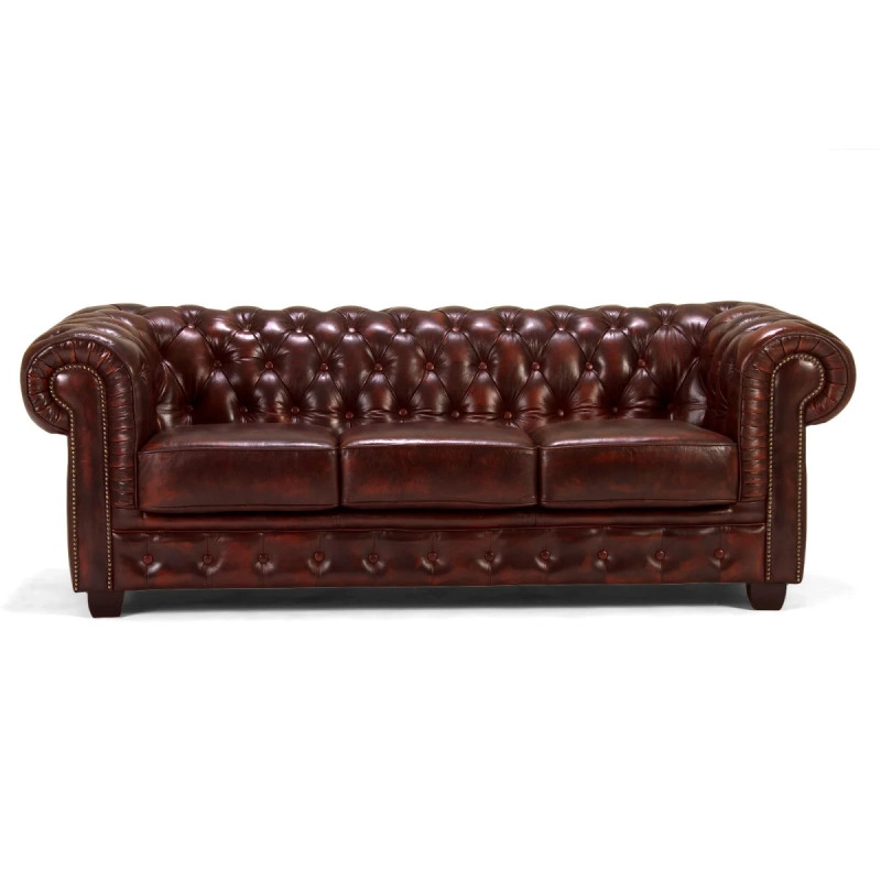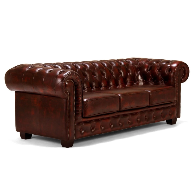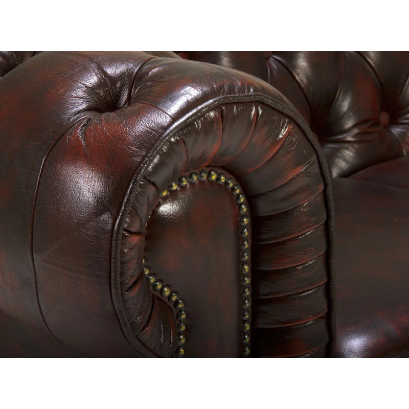 Pohovka Chesterfield Big v ikonickom designu ponúka kombináciu luxusu a pohodlia. Tento trojmístny model z pravej červenej kože, o rozmeroch 221×98×79 cm, dodá vašej obývačke nezabudnuteľný šarm a eleganciu.