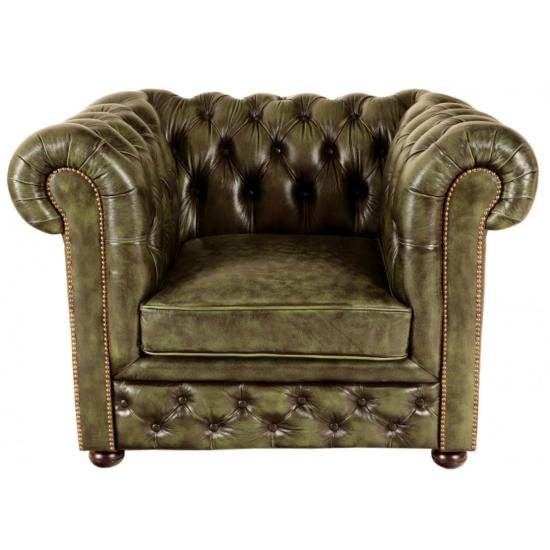 Pohovka jednomiestna Chesterfield Greenfield z pravej hovädzej kože Green