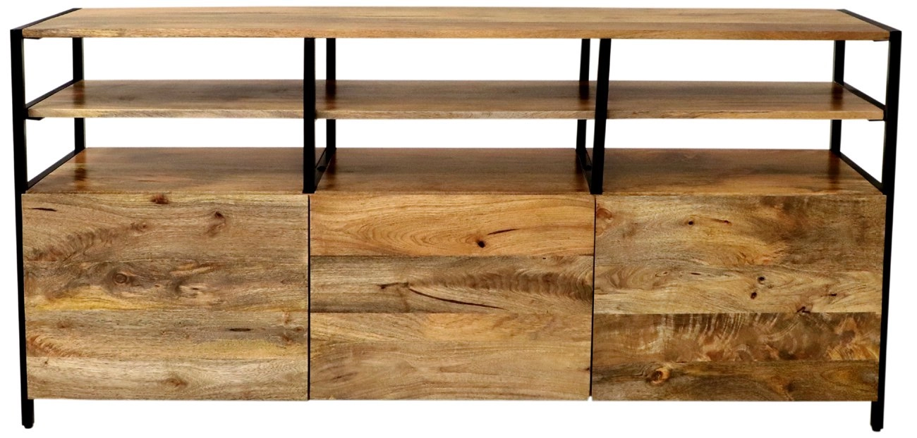 Tento jedinečný TV stolík masív kov a dreva mango je originálnym doplnkom do každého obývacej izby. S rozmermi 160 cm na šírku, 45 cm na hĺbku a 75 cm na výšku, ponúka dostatok priestoru pre vašu elektroniku a ďalšie doplnky. Stolec je zhotovený z kvalitného mangového dreva, známeho pre svoju odolnosť a elegantný vzhľad. Kovová konštrukcia pridáva stolcu robustnosť a moderný industriálny štýl, ktorý skvele doplní interiér v štýle indického nábytku.