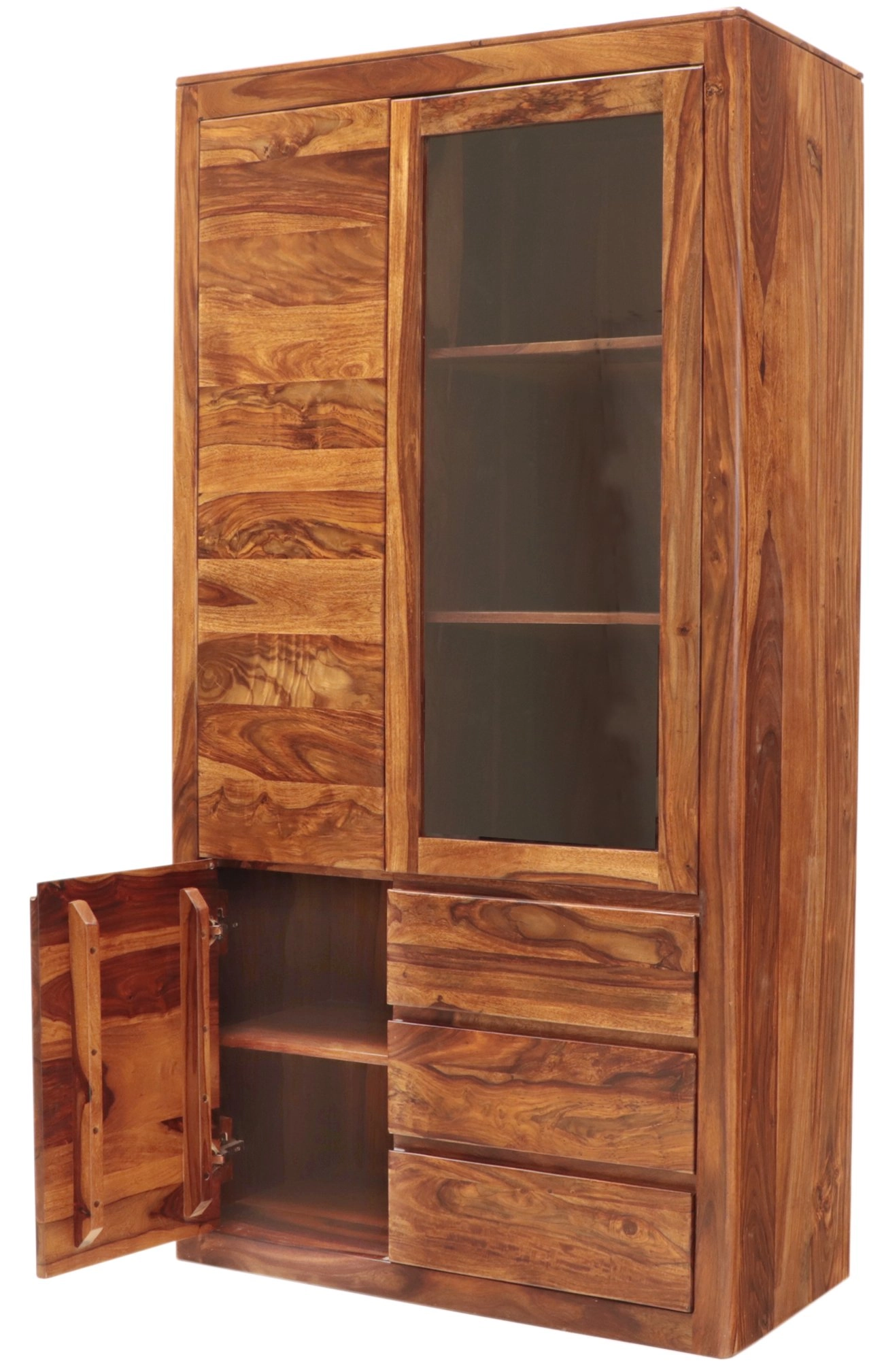 Objavte krásu a funkčnosť v jednom s našou vitrínou do obývacej izby z masívu palisander s rozmermi 100x190x45 cm. Tento jedinečný kus indického nábytku sa stane ozdobou každého interiéru vďaka svojmu kvalitnému spracovaniu a výrazným charakteristickým črtám palisandrového dreva. Vitrína je súčasťou exkluzívnej kolekcie TINA, ktorá sa zameriava na spojenie elegancie s praktickosťou.